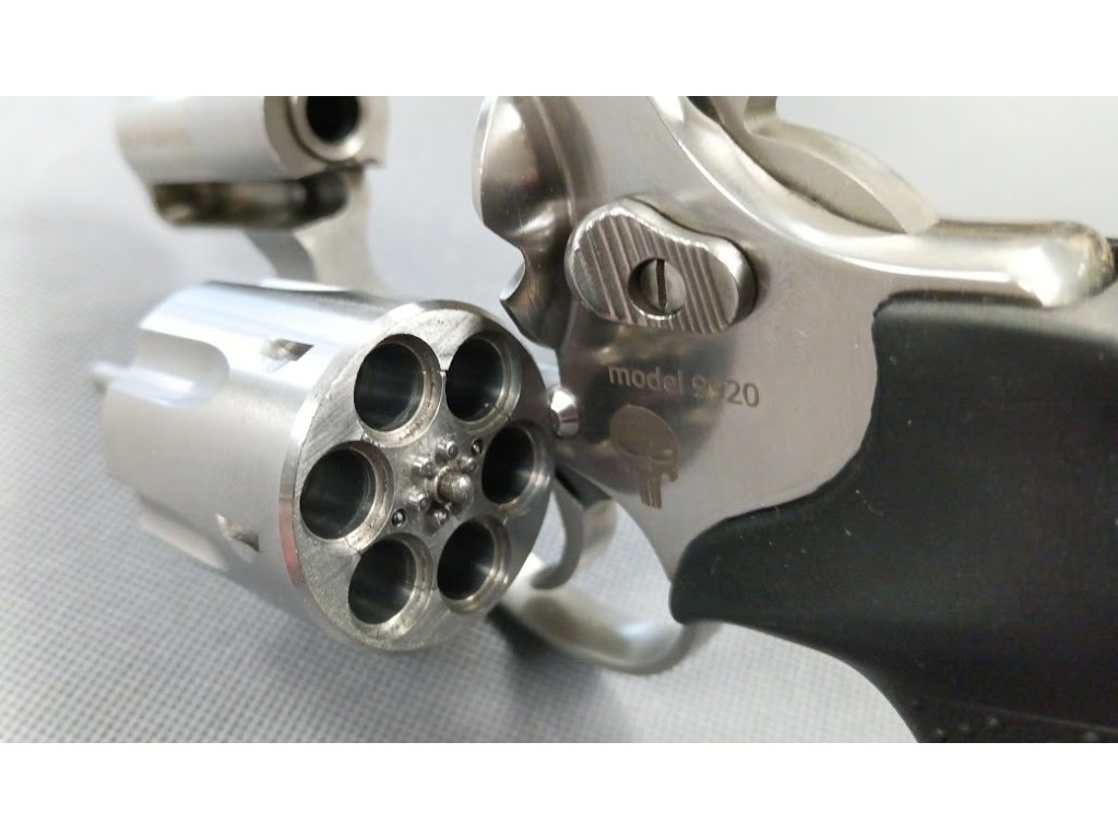 Zbraň je v tomto případě vyrobena z nerezové oceli. Anatomicky tvarované a příjemně zdrsněné střenky poskytují jisté a komfortní držení.