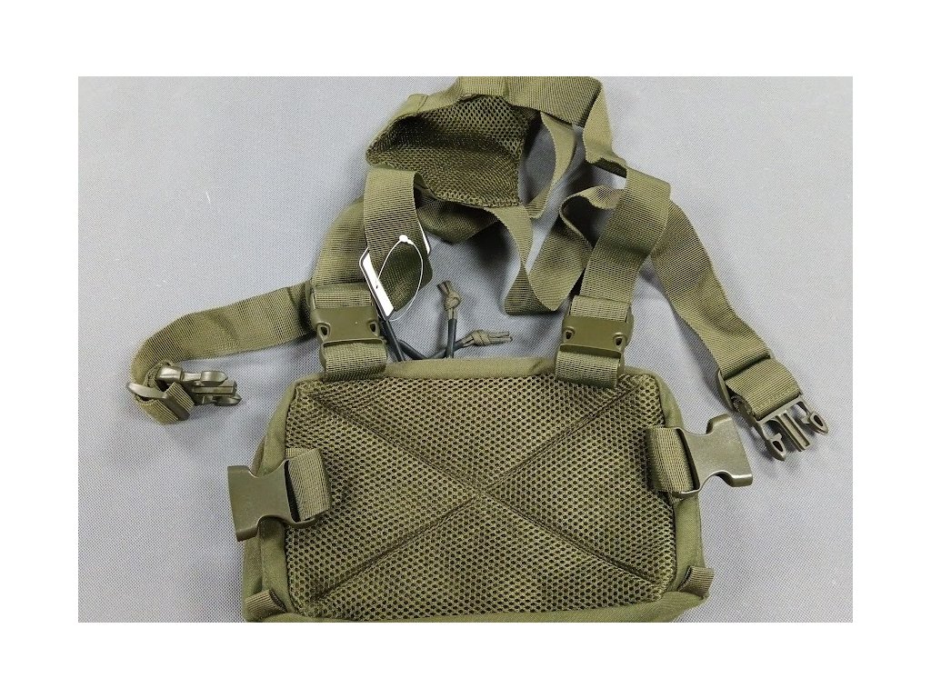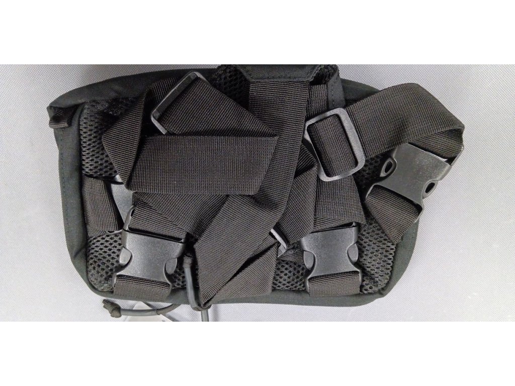 Náprsní kapsa se systémem pro nošení přes ramena, díky plochým popruhům se dá nosit i pod batohy, snadný přístup k vybavení.