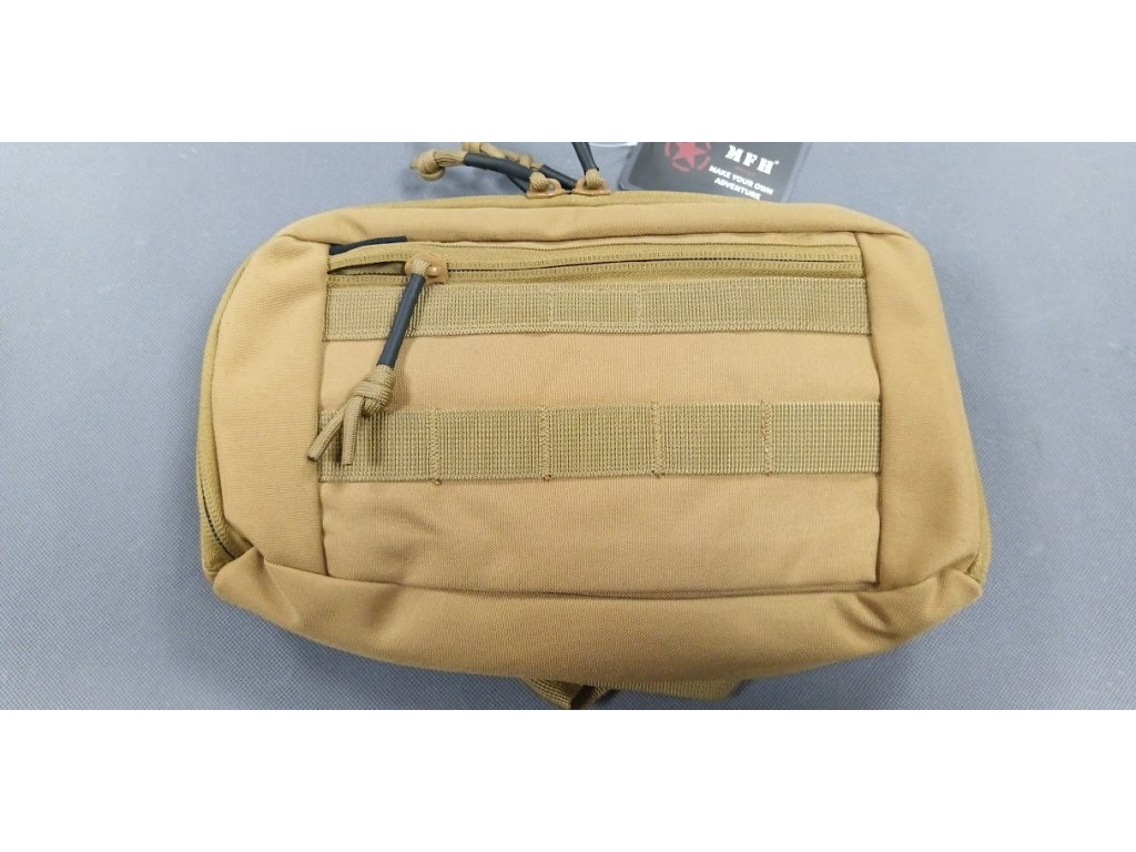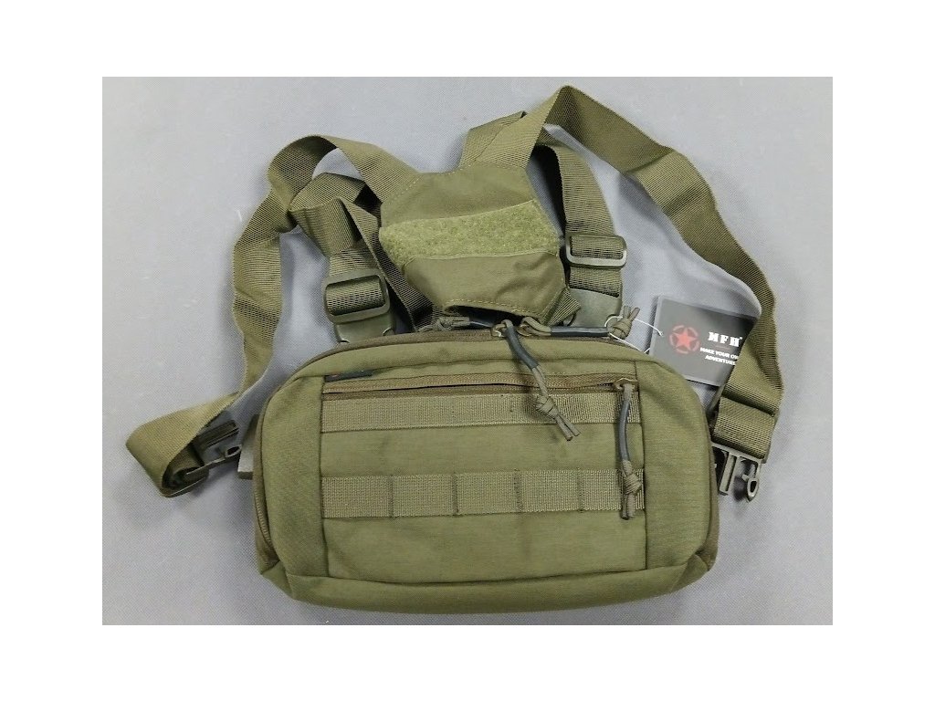 Náprsní kapsa se systémem pro nošení přes ramena, díky plochým popruhům se dá nosit i pod batohy, snadný přístup k vybavení.