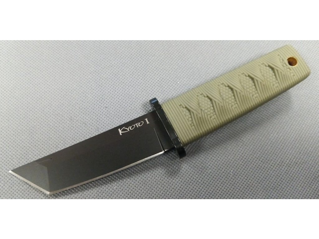 Kyoto je malý nůž s pevnou čepelí a hladkým ostřím. Oba tvary čepele kyotských nožů jsou stylizovány do tvaru japonských mečů. Robustně stavěné čepele mají full tang konstrukci, tedy jsou protaženy po celé délce rukojeti. Mezi čepelí a rukojetí z Kray-Ex ™ je ochrana ruky z nerez oceli. Tato záštita připomíná tradiční cubu japonského meče. Společně pak s tvarovanou rukojetí dodává noži jedinečnou podobu. Čepel nože je vyrobena z nerezové oceli 8Cr13MoV která po tepelném zpracování vykazuje tvrdost 57-58 Rockwell. Subtilní a pohodlné pouzdro je vhodné pro skryté nošení nože v zavěšení na krku za pomoci bezpečnostního řetízku. Dá se velmi dobře schovat pod oblečením a nezpůsobuje nepříjemné pocity při dlouhém nošení. Pouzdro se dá osadit úchytem C-Clip od Cold Steel® (SACLB), takže lze nůž nosit i na opasku.