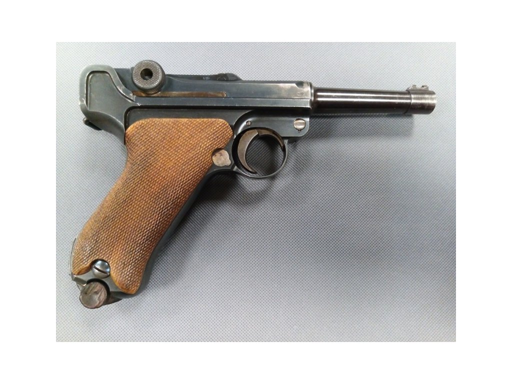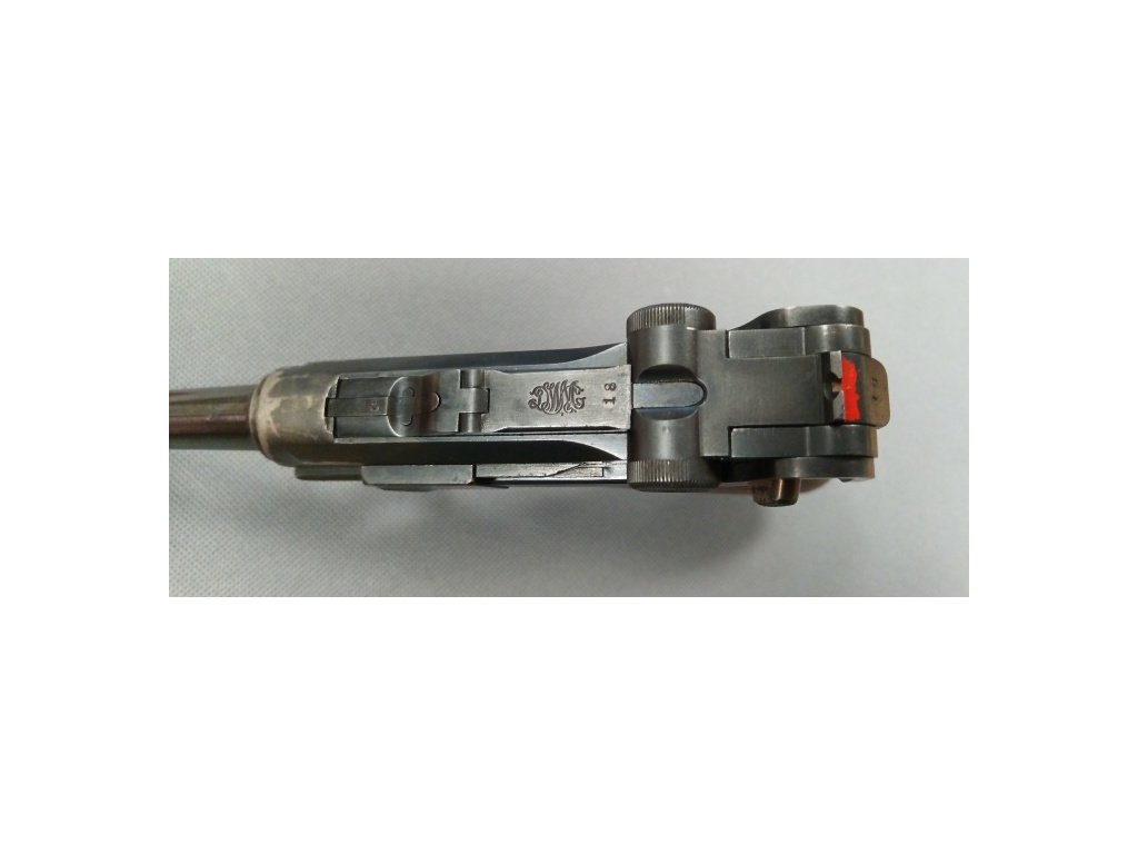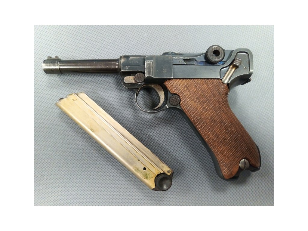 Samonabíjecí pistole německé výroby, povrch původní, dřevěné střenky, originální zásobník, vývrt hlavně čistý.
